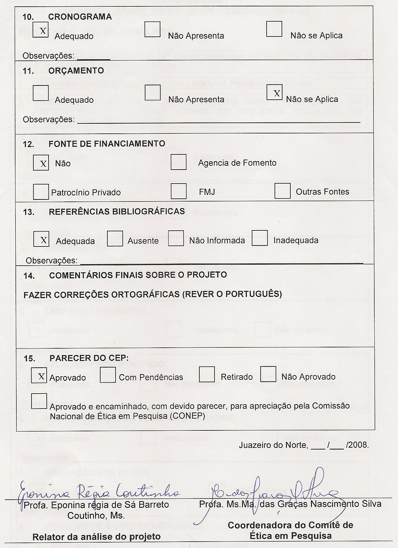 5. Caso não tenha incluído sessão de Agradecimentos, certifico que nenhuma pessoa fez qualquer contribuição substancial para sua confecção.