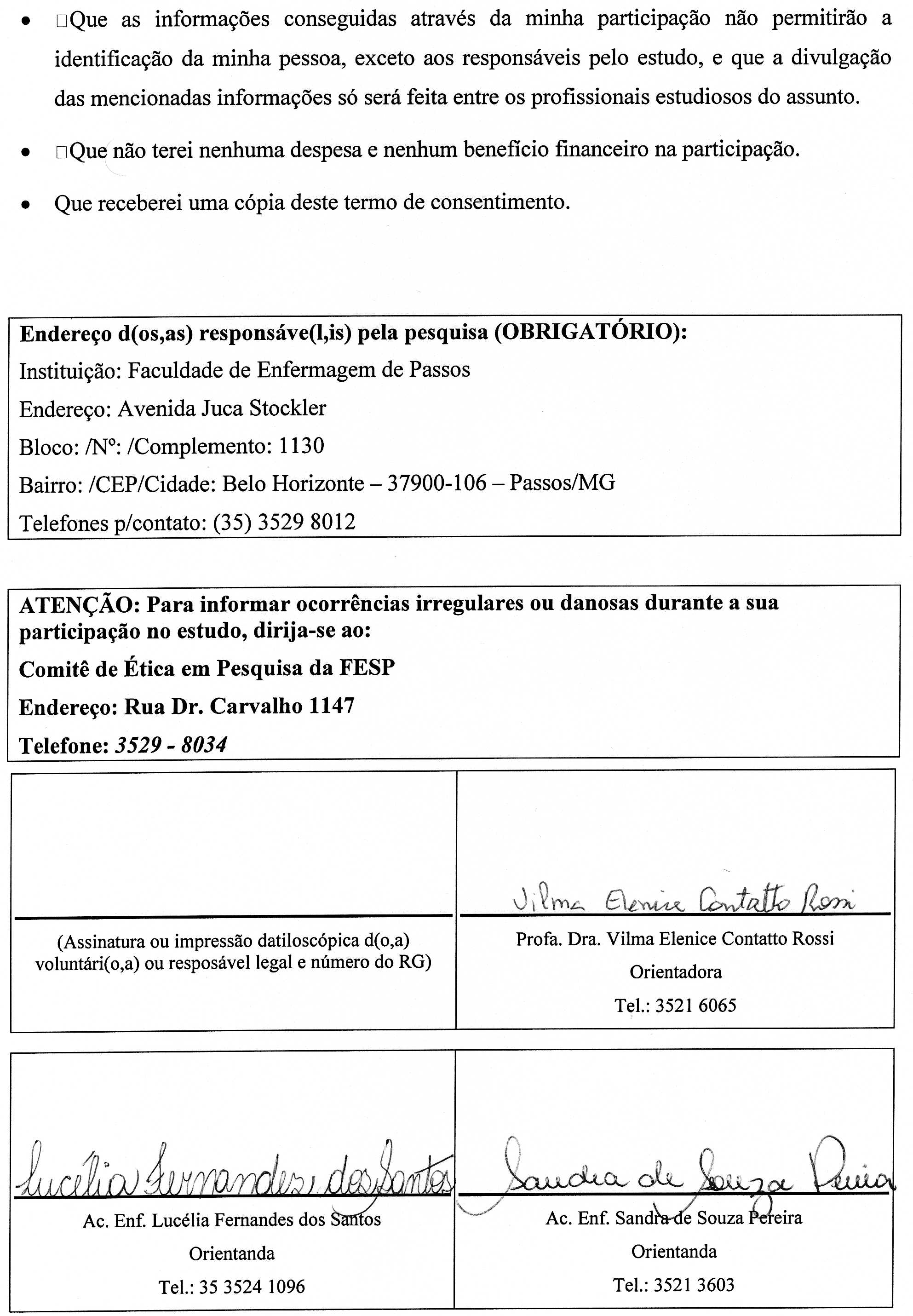 Nome dos autores (por extenso) e respectivas assinaturas