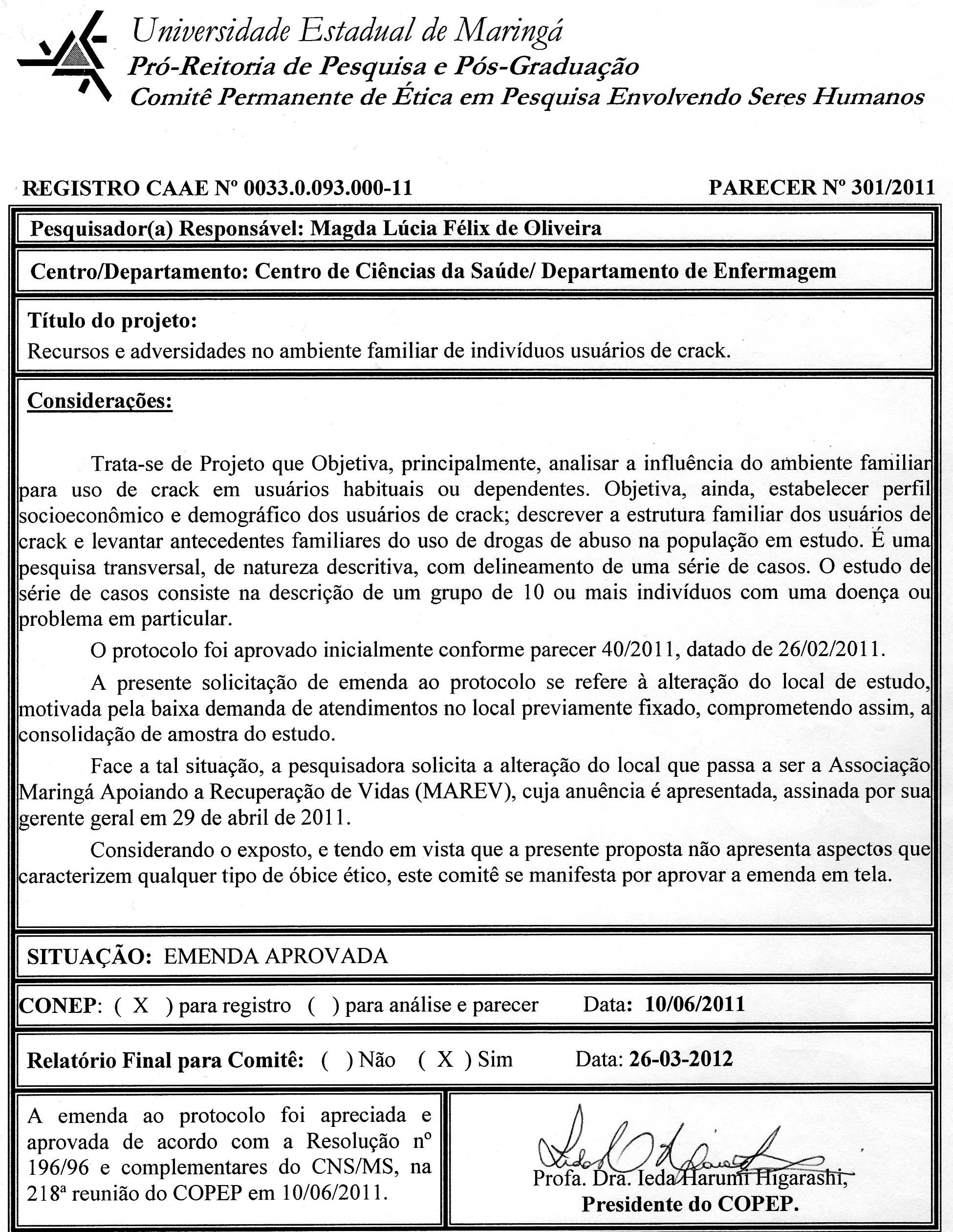Drogas Ilícitas, Cocaína Crack, Relações Familiares, Comunidade Terapêutica.Resumo
