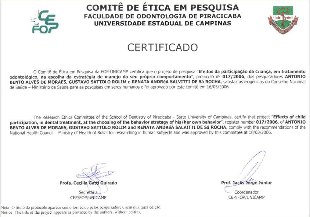 odontopediatria, comportamento, tomada de decisão.Resumo